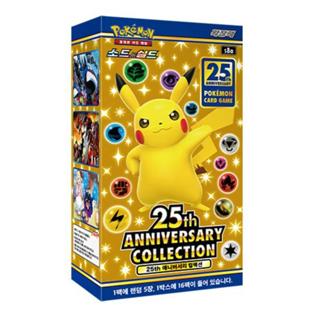 Die Jubiläums-Displaybox enthält mehrere original Pokémon-Boosterpacks aus der 25th Anniversary Collection. Diese Serie wurde weltweit veröffentlicht, um 25 Jahre Pokémon-Geschichte zu feiern, mit zahlreichen Referenzen an klassische Karten und Designs aus früheren Generationen.